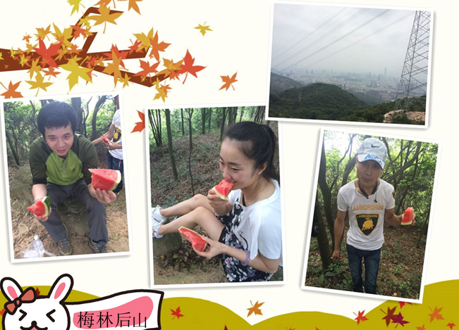 登山的入口还是和往常一样,在梅林关。简单的拉伸之后,我们就开始登山了,因为平常还算有锻炼,所以不会很辛苦,不过我们的另外一位同伴—供应一般贸易拼车出口退税部的美女,平常缺乏锻炼,在半道上和我们分开了,看来在尽心尽力处理一般贸易出口业务退税的同时,体育运动也不可缺乏啊,身体才是革命的本钱,有了好的身体,才能为大家供一般贸易拼车最优质的服务项目。山顶风光格外精彩,最重要的是,我们还背了个大西瓜上山哦,大汗淋漓之后西瓜可真是透心凉的舒服!稍事休息我们就开始下山,上山容易下山难,今天的新路线比较长,比以往的长了近8公里,难度比较高,还有需要借助绳索的地段,虽然艰辛,倒也最终完成了目标,出了一身汗,精气神感觉也要好了很多。