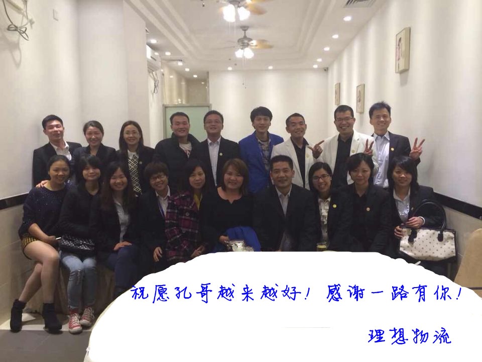 欢送会上,同事们回忆了过去8年岁月里大家在一起共事时的点点滴滴,纷纷表达了对他的美好的祝愿,理想物流总经理韦业基先生亲手为他送上公司准备的薄礼,并合影留念,愿孔哥在新的一年,在新的征途上开辟一片新天地。祝一路顺风!