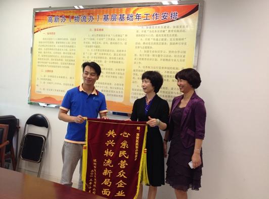 近日,我司参加了宝安区政府与博览中心联合组织的“亚洲第一、世界第二”的中国(深圳)国际物流与交通运输博览会,简称物博展。为感谢宝安区高新办物流办对民营企业的大力支持,公司营销中心总监蒋明松总监协同公司同事特意为宝安区高新办物流办赠上锦旗一幅,并与高新办领导进行了友好座谈!座谈中,区政府领导详细询问了公司发展情况,组织架构,经营模式,并对公司发展提出理念上的引导,政府领导强调将一如既往扶持中小型民营企业,加强政企联系沟通,为民营企业发展提供优质服务,实现政企友好互动。